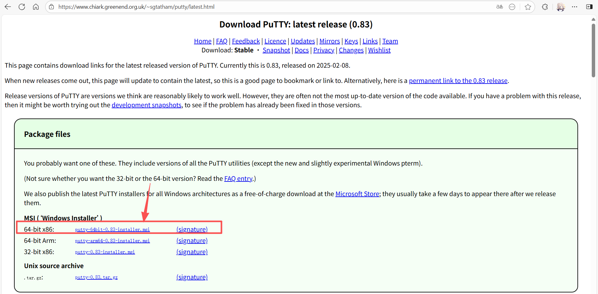·下载并安装PuTTY:https://www.chiark.greenend.org.uk/~sgtatham/putty/latest.html