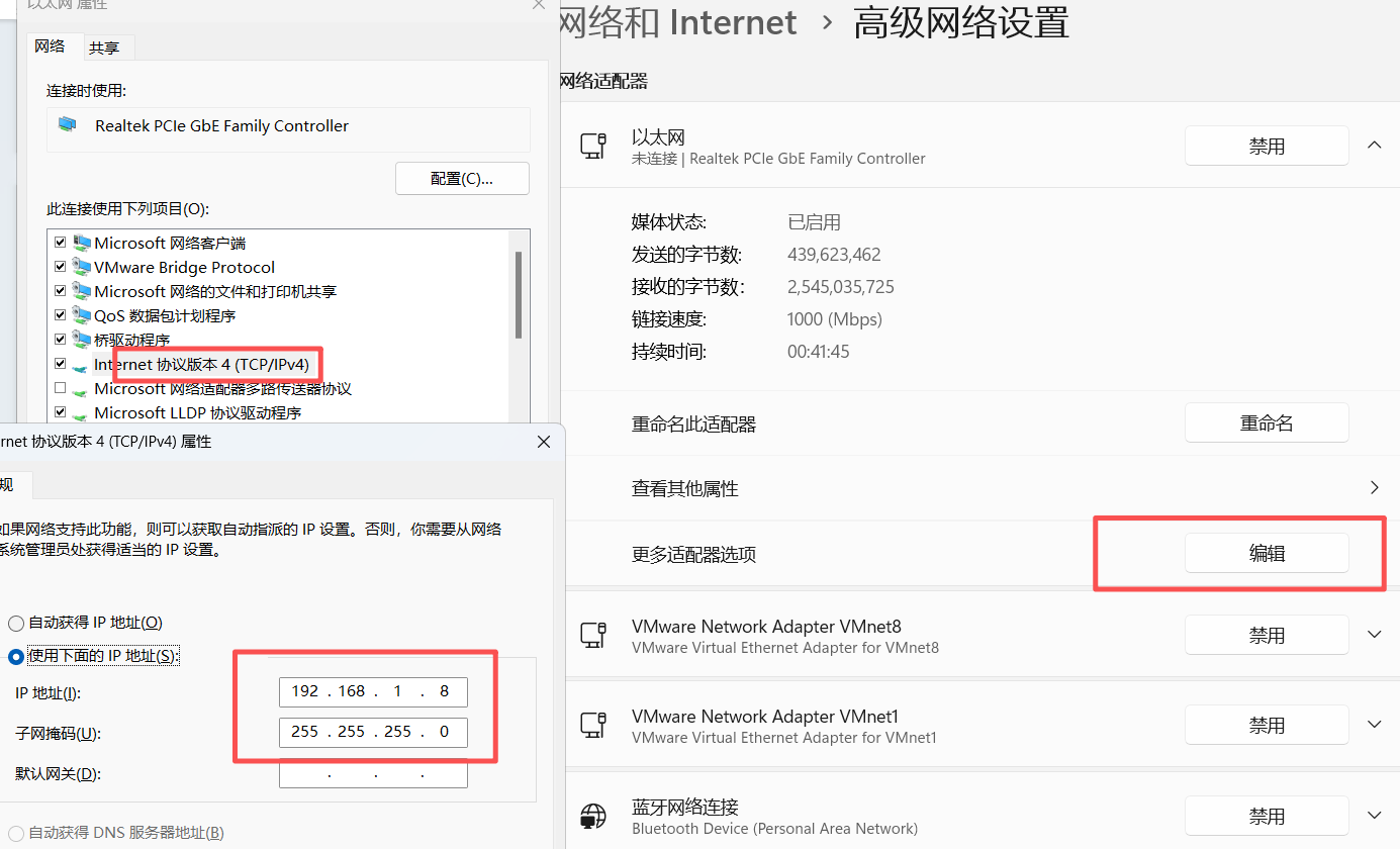将电脑IP地址修改为192.168.1.X。(X自定义,测试使用192.168.1.8)