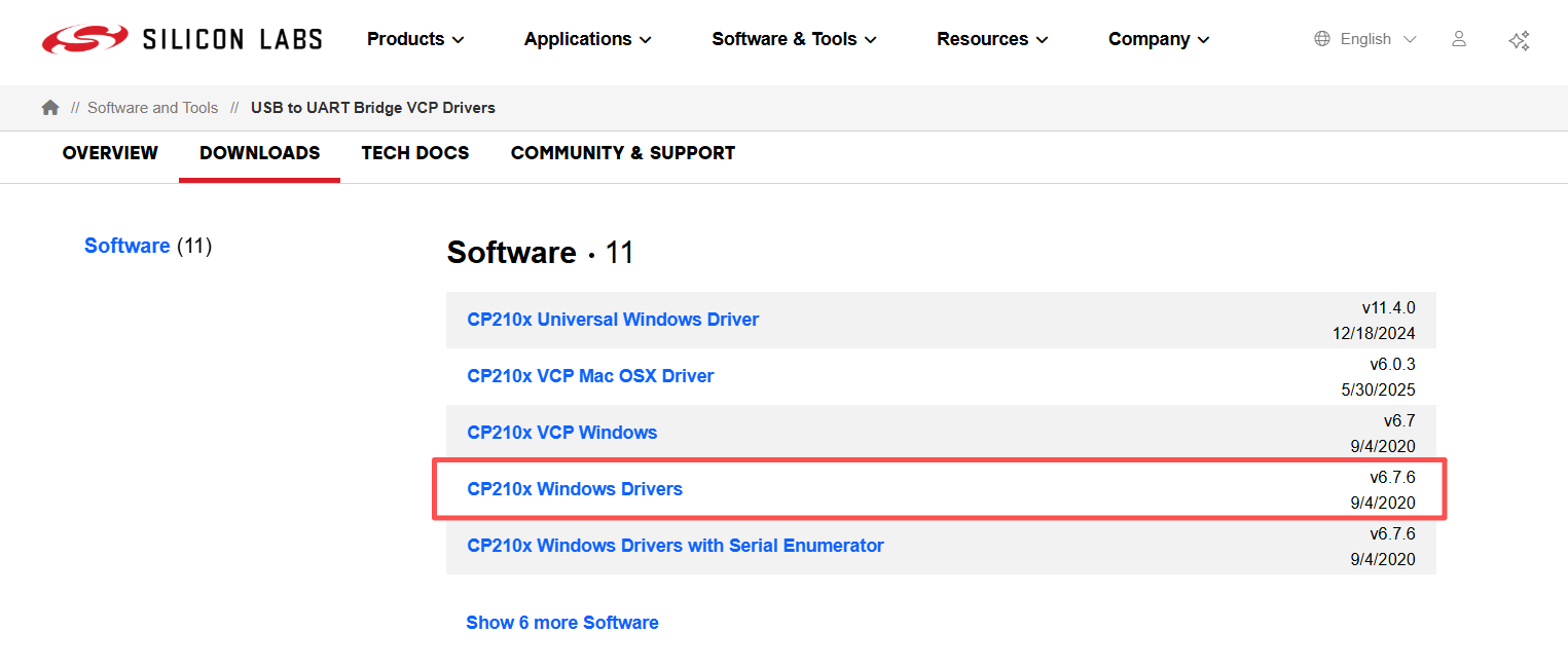 ·CP2102驱动下载:https://www.silabs.com/software-and-tools/usb-to-uart-bridge-vcp-drivers?tab=downloads