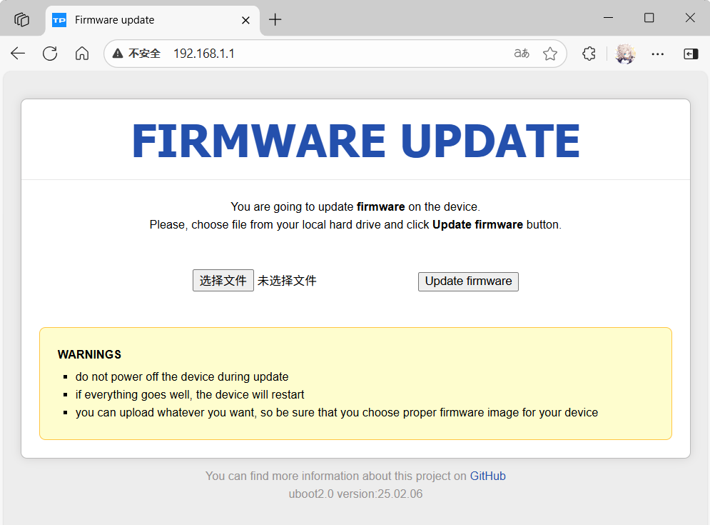 使用浏览器访问192.168.1.1,在页面中上载固件即可。