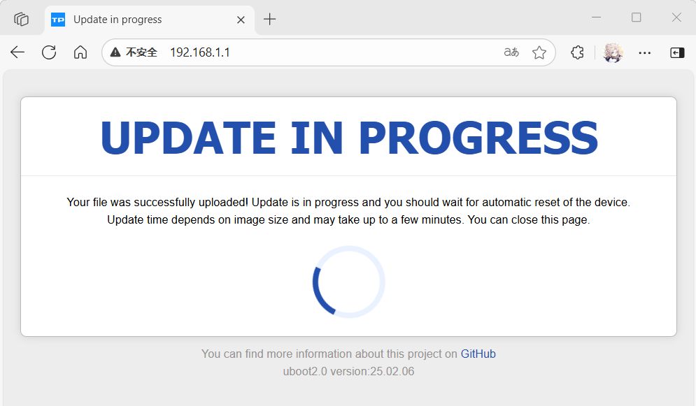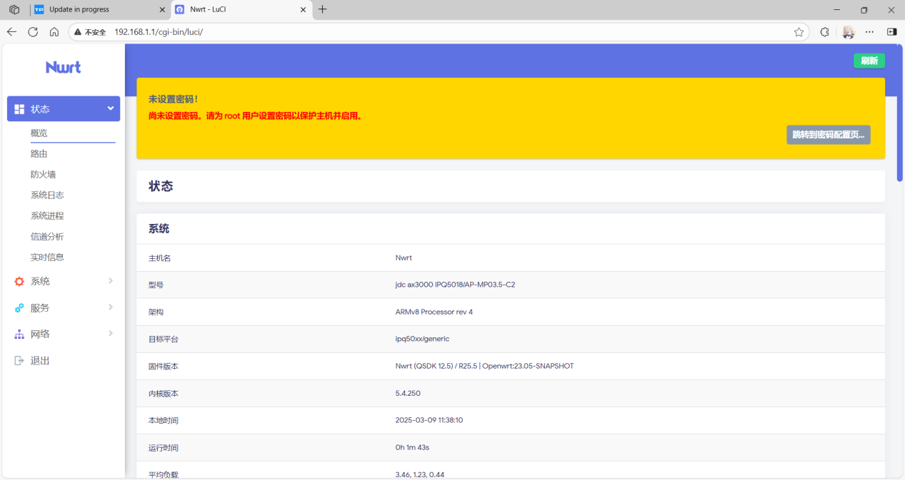等待设备自动重启,重启完成后,断开路由器的WAN口与电脑的连接,使用路由器的LAN口与电脑的连接,使用浏览器访问192.168.1.1,登录到OpenWRT。