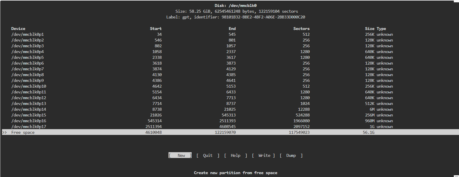 cfdisk /dev/mmcblk0
